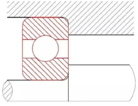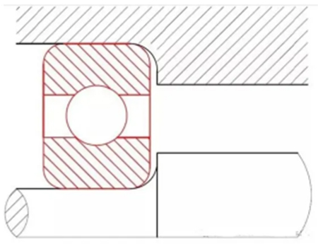 如上圖所示當(dāng)軸承倒角小于軸承箱與軸肩倒角時(shí),無法裝配到位,容易造成軸承倒角處應(yīng)力集中,裝配傾斜,其他配合零件無法匹配等一系列問題。